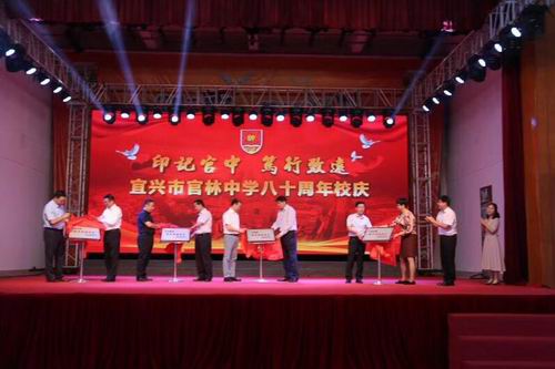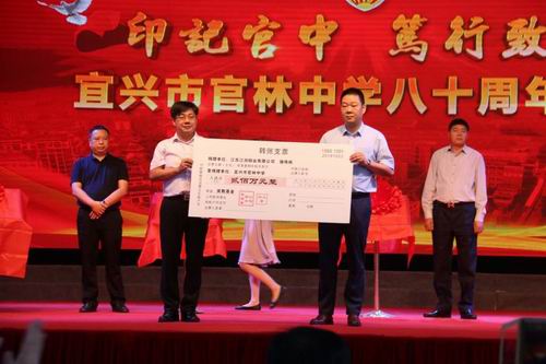 宜興市官林中學80周年校慶活動即日舉行,官林中學4只冠名基金揭牌儀式同時舉行。江潤銅業總經理駱偉棟參加了此次盛會,向母校捐贈200萬元設立教育獎勵基金。江潤銅業與三川投資、永友糧油、江南電纜一起凝聚力量,致力推動教育事業發展。