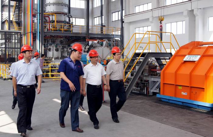 8月21日上午,宜興市政府張立軍市長考察意達銅業項目建設情況,總經理駱偉棟陪同參觀。意達銅業銅及銅合金線材、銅合金絞線項目,總投資36000萬元,引進美國SCR-7000銅連鑄連軋及銅合金生產線和德國NIEHOFF公司銅導體高端裝備,年產高性能銅及銅合金導體、銅合金絞線35萬噸。在現場,美國南線35萬噸SCR-7000銅連鑄連軋及銅合金生產線順利試生產。該生產線生產速度達到48噸/小時,關鍵技術指標均已達到國際一流水平。