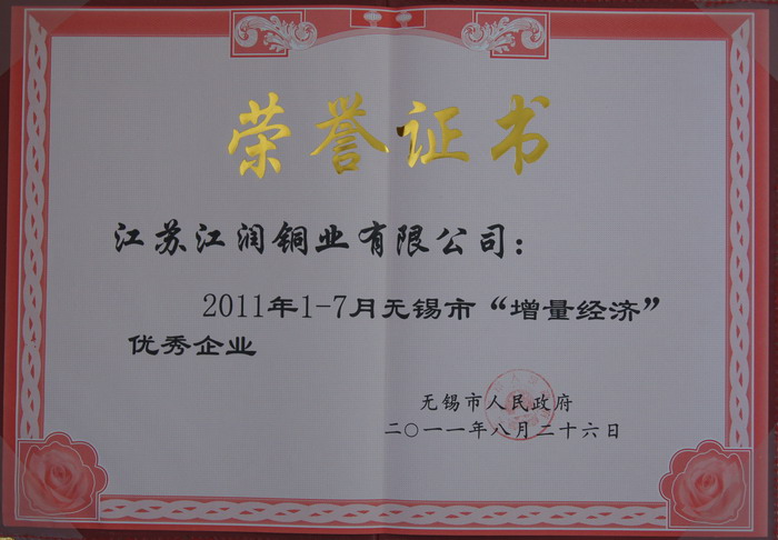 江潤銅業榮獲無錫“增量經濟”優秀企業