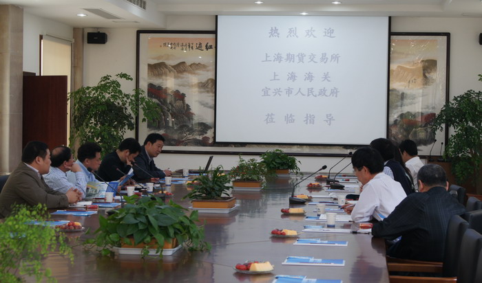 10月22日,上海期貨交易所丁文輝、宜興市人民政府周市長等一行10人訪問江潤銅業,公司總經理駱偉棟熱情接待。 駱總對上海期交所、市領導的再次到來表示熱烈歡迎,詳細介紹了江潤銅業本年度生產經營的基本狀況,對未來發展的展望。期交所丁總監對江潤銅業在多年合作中提供的優質服務表示感謝。 隨后,來訪客人深入生產車間,參觀SCR-7000銅連鑄連軋車間、復合銅線車間、銅絞線車間。江潤銅業先進的裝備,整潔的車間,優美的廠區環境給參觀團一行留下了深刻印象,一致認為符合上海期貨所注冊試驗工廠的標準。